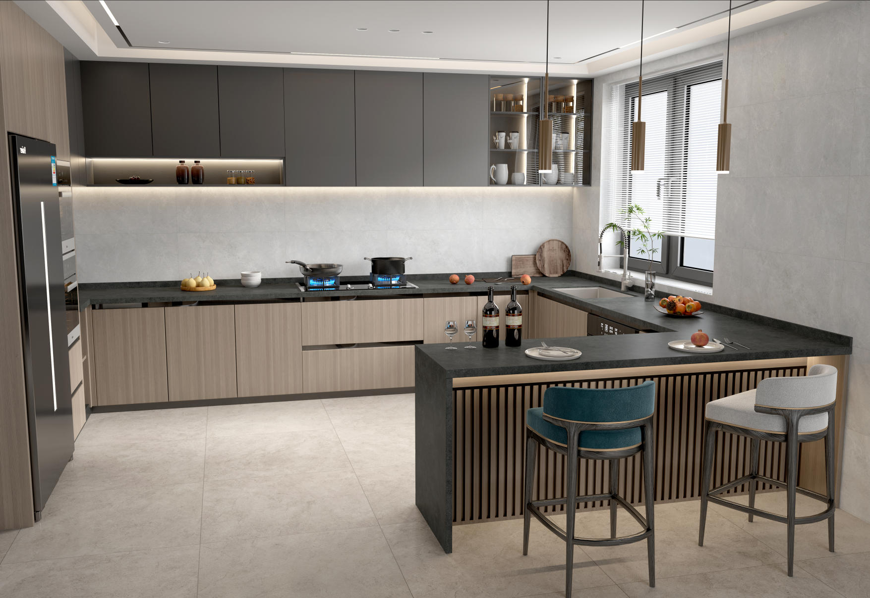 深海充滿神秘色彩,靈動活力的紋理變化莫測的,海蘭灰巧妙地將海洋元素與現代審美相結合。