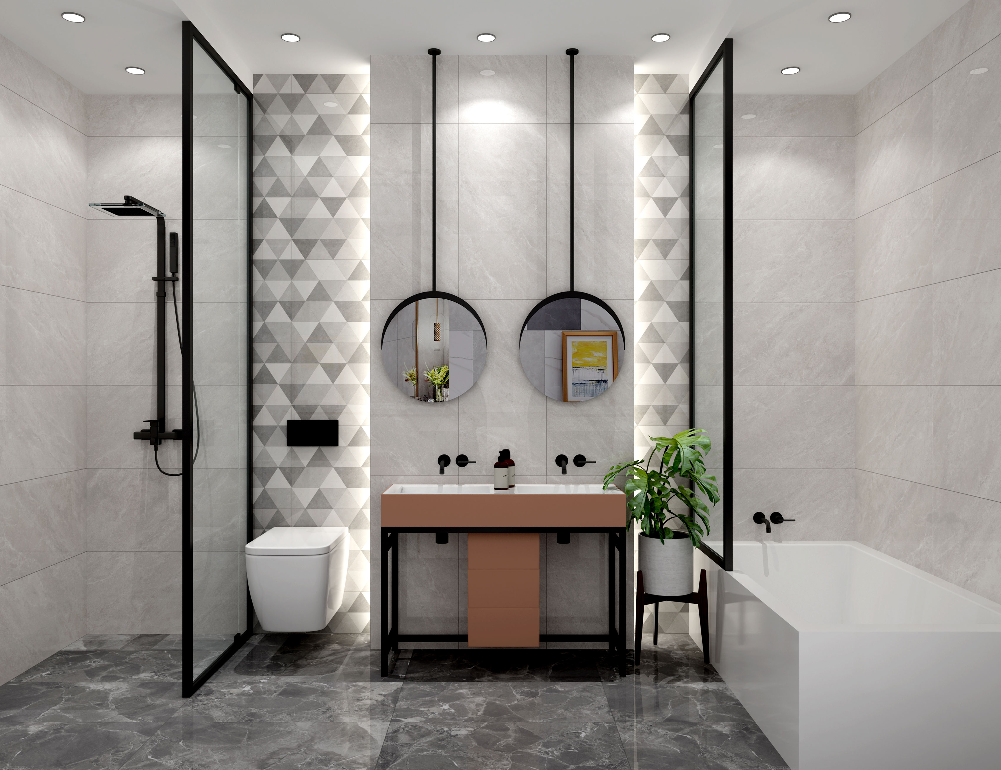 略帶一抹暖調(diào)的灰,柔和、沉靜、內(nèi)斂,天然石材的原生紋理在磚面上若隱若現(xiàn),塑造柔美輕盈的空間印象,凸顯不凡品位。