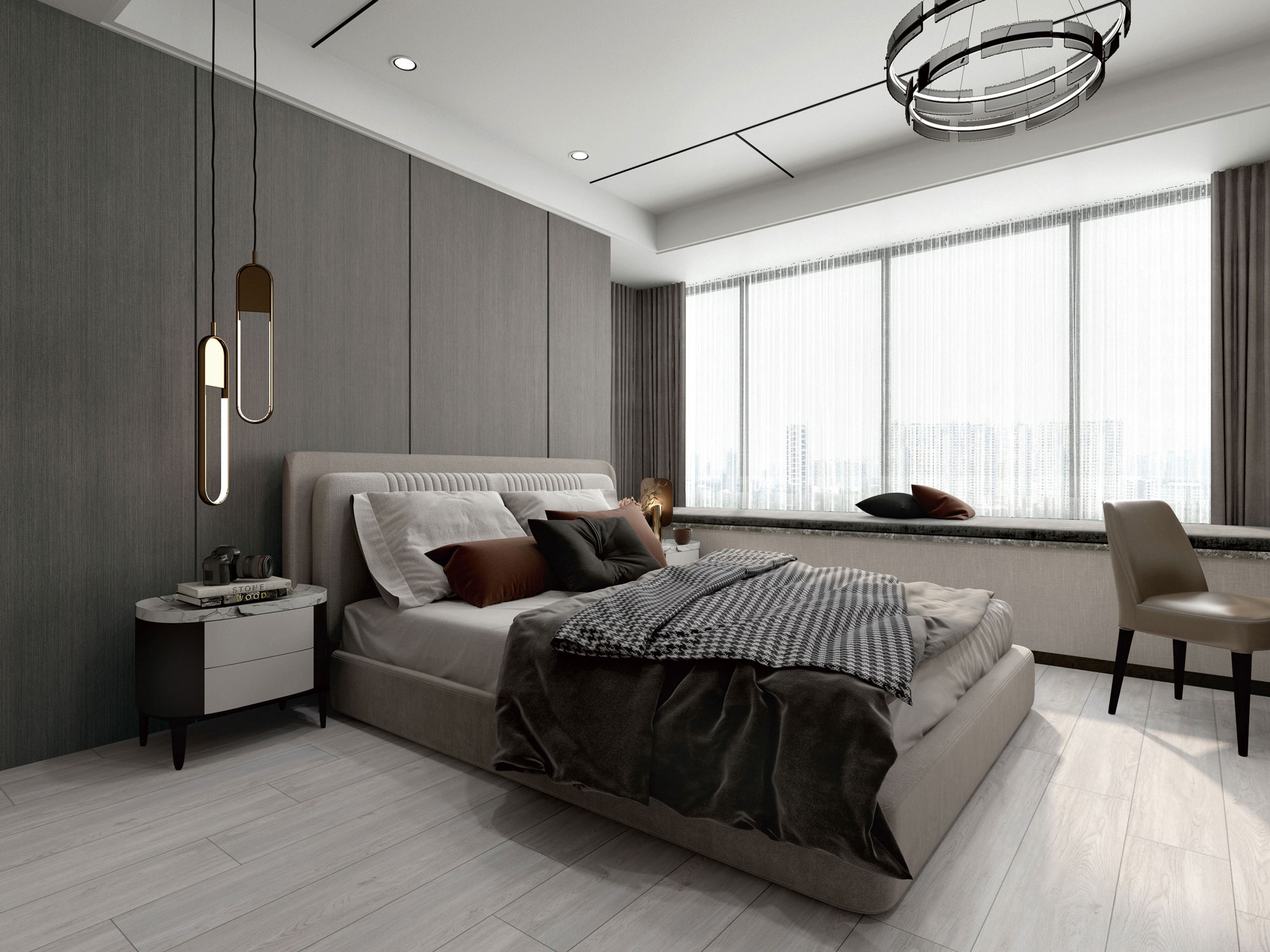 以樹木紋為創(chuàng)作靈感,淺灰細(xì)紋錯(cuò)綜交纏,賦予空間更多自然雅致的氣質(zhì)。