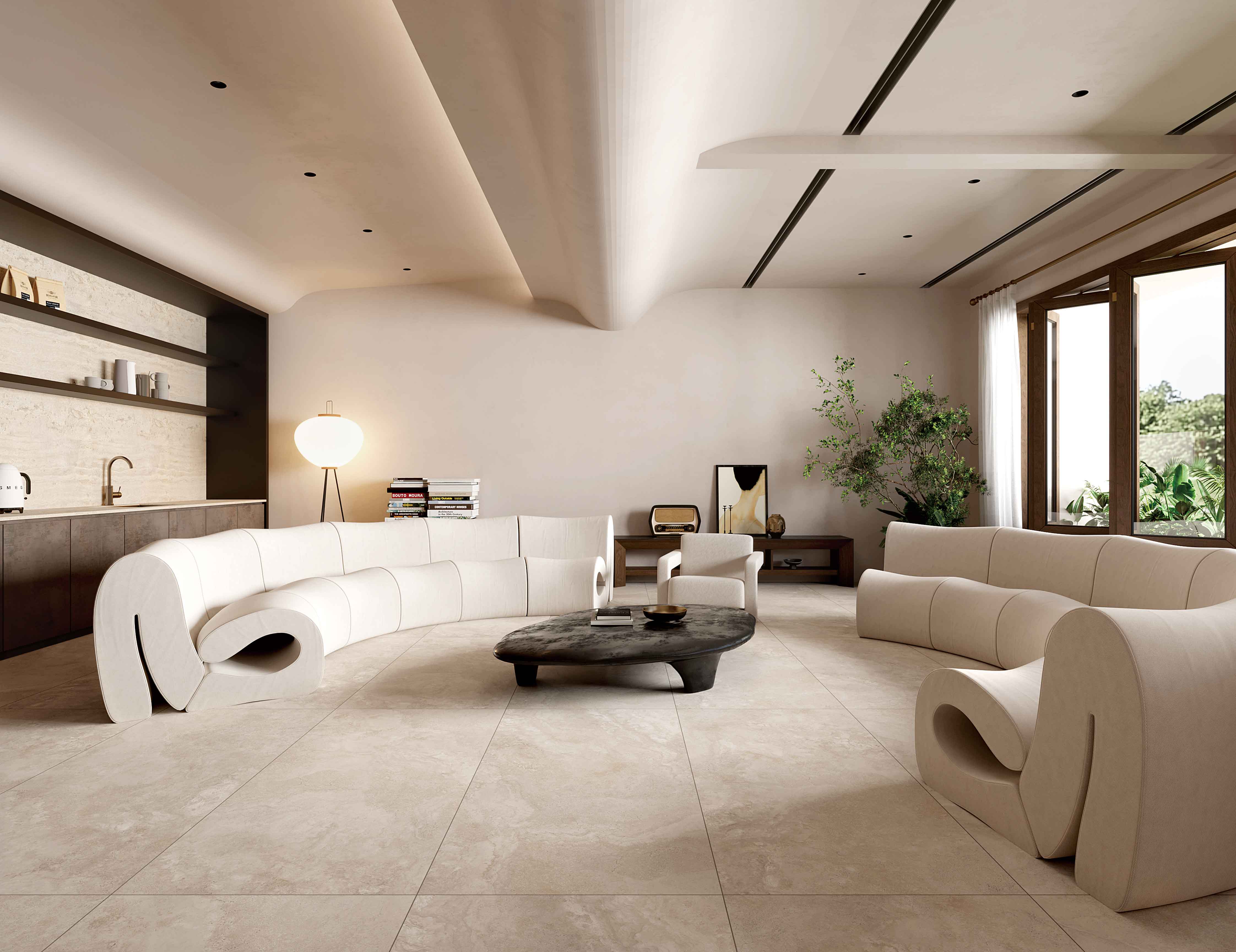 以“風城”芝加哥為設計靈感,表面圖案突出這座城市的建筑基礎“鋼筋水泥”,獨特的灰色色調提出一種超現代的城市風格,即有一定的距離感,又極富空間想象力。整體鋪貼彰顯空間的個性格調,富有繁華城市的張力與生命力。