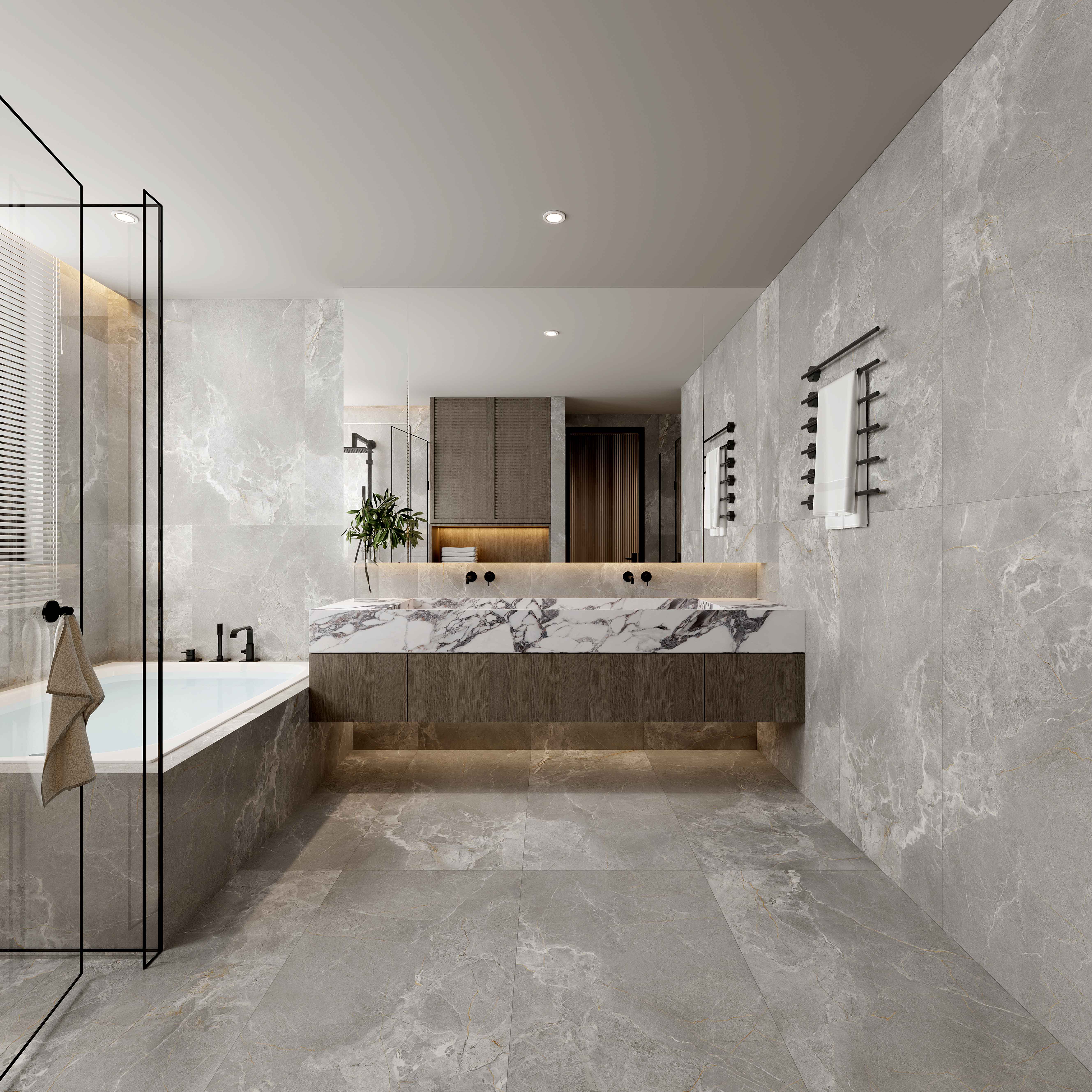 濃郁的灰色色澤,細(xì)膩的自然游動(dòng),輕松營(yíng)造出一股浪漫、寫(xiě)意的空間氛圍。大空間鋪貼,整體感覺(jué)更連貫,更氣派。